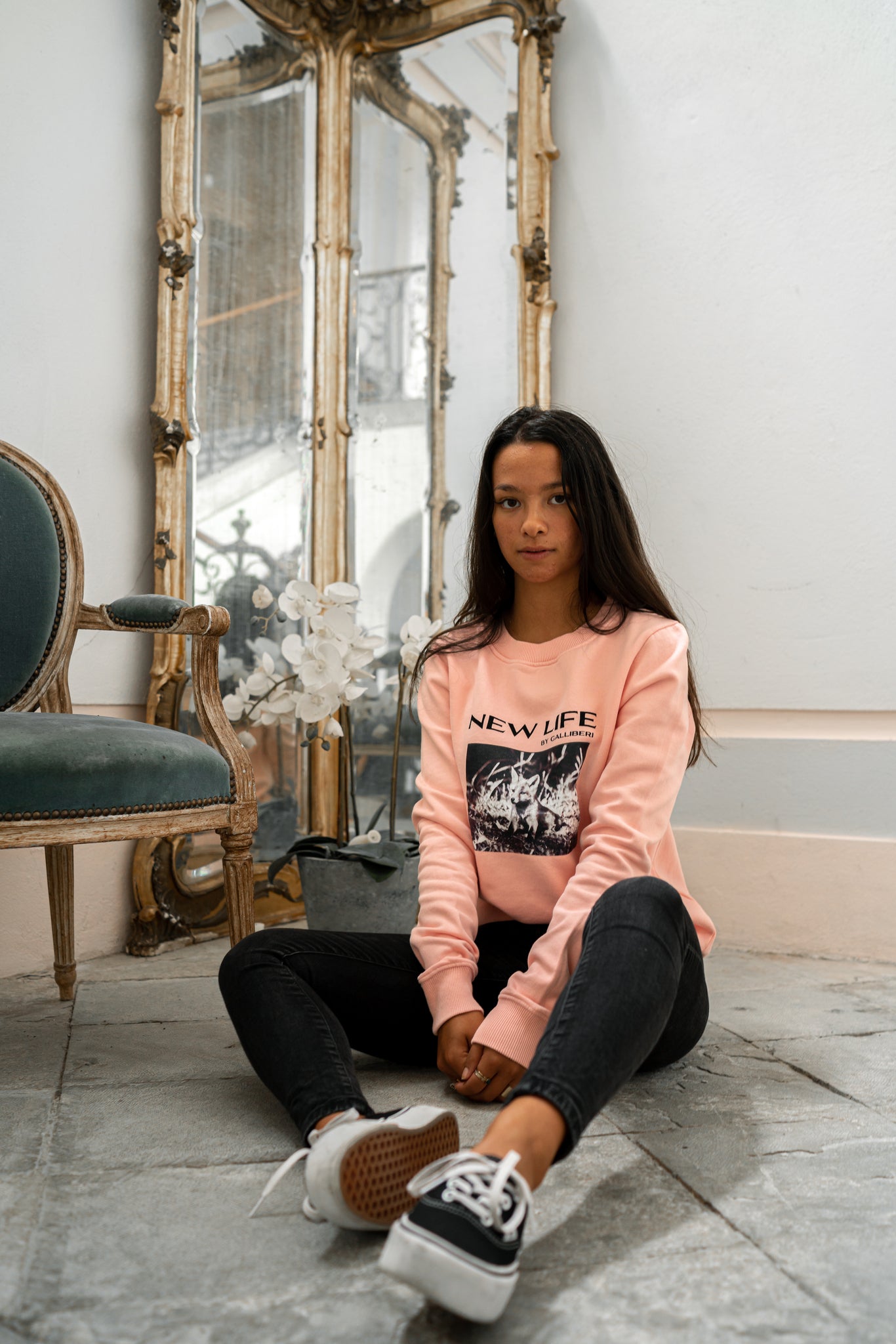Julie M. – Nantes « Le sweat "New Life" est encore plus beau en vrai ! Le rose est doux, la coupe est parfaite, et le visuel est canon. Je l’ai porté au boulot et on m’a demandé deux fois où je l’avais acheté ! »
